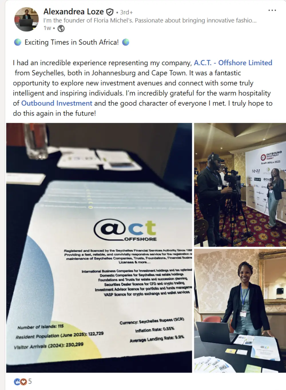 Are you considering attending the Outbound Investment Summit 2025 – Johannesburg ? If you are in any of the professions or industries listed below, this annual event is an opportunity you should not miss.